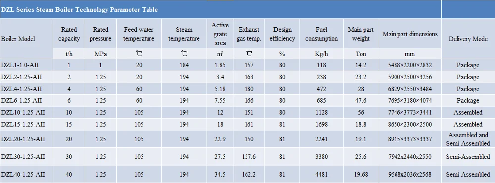 1. DZL new type water fire tube boilers (1-35T/H, 0.7-29MW)